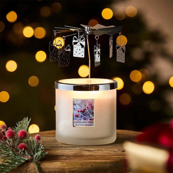 Χαρίστε μια μοναδική, ατμοσφαιρική εμπειρία με το Σετ Δώρου – Αρωματικό Κερί με Μεταλλικό Καρουζέλ. Το ζεστό φως του κεριού κινεί απαλά το μεταλλικό καρουζέλ, δημιουργώντας έναν μαγικό, χριστουγεννιάτικο χορό από μικρά δώρα που γυρίζουν γύρω-γύρω.