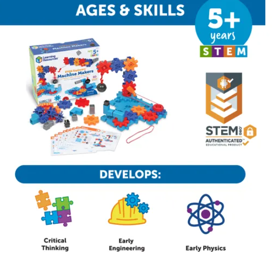 Με το STEM Explorer Machine Makers, τα παιδιά 5 ετών και άνω μεταμορφώνονται σε μικρούς μηχανικούς, σχεδιάζοντας, κατασκευάζοντας και δοκιμάζοντας μηχανές με περιστροφικά στοιχεία, εμπνευσμένες από τον πραγματικό κόσμο.