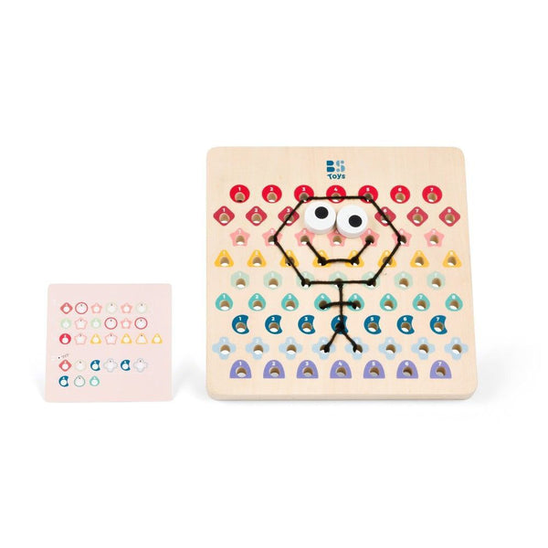 Ένα δημιουργικό εκπαιδευτικό παιχνίδι που ζητά από τα παιδιά να ακολουθήσουν χρωματικούς κωδικούς και να δημιουργήσουν σχέδια με κλωστές — ιδανικό για εξάσκηση ακρίβειας, λεπτής κινητικότητας, συντονισμού και λογικής σκέψης.