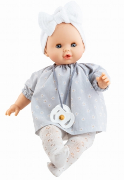Με όμορφες λεπτομέρειες όπως απαλά σκαλισμένα μαλλιά και ένα γοητευτικό χαμόγελο, η Sonia γίνεται η τέλεια παρέα για κάθε παιδί. Σχεδιασμένη με γνώμονα την ασφάλεια, η κούκλα πληροί όλα τα ευρωπαϊκά πρότυπα, ώστε να μπορείτε να είστε σίγουροι ότι το παιδί σας παίζει με τα καλύτερα προϊόντα που διατίθενται στην αγορά. Φοράει ένα γοητευτικό φόρεμα με μαργαρίτες, καλσόν λευκό και μια όμορφη λευκή κορδέλα στο κεφάλι, διαθέτει και πιπίλα.