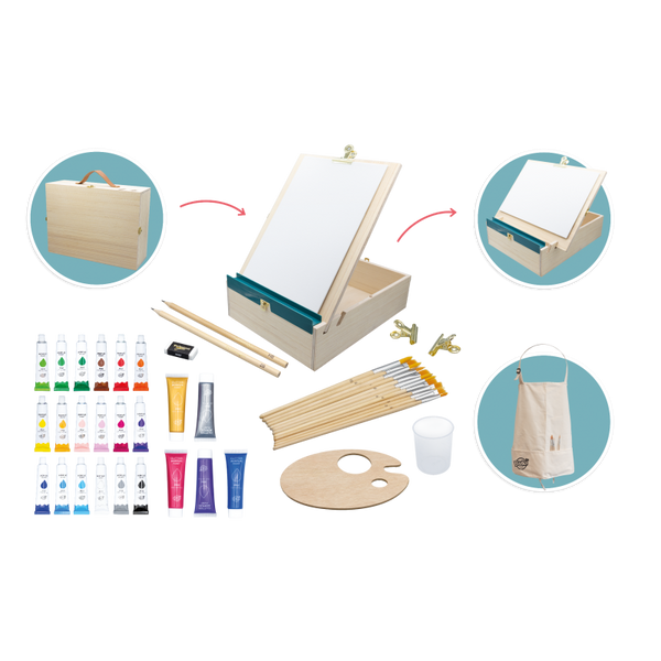 Φόρεσε την ποδιά σου και μάθε τις τεχνικές της ακρυλικής ζωγραφικής με αυτό το ξύλινο καλλιτεχνικό κουτί, το οποίο μετατρέπεται σε καβαλέτο.