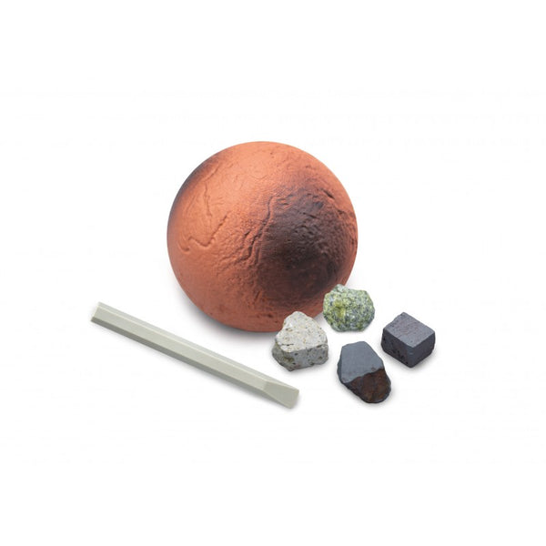 Προχώρησε την εξερεύνησή σου ακόμη περισσότερο, ανασκάβοντας ένα μπλοκ γύψου για να ανακαλύψεις τέσσερα αυθεντικά πετρώματα — ανδεσίτη, μαγνητίτη, αιματίτη και ολιβίνη — παρόμοια με τα ορυκτά που έχουν εντοπίσει οι επιστημονικοί ρόβερ στον Άρη.