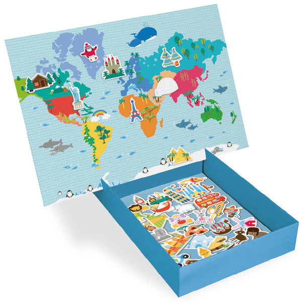 Διασκεδαστικό και εκπαιδευτικό μαγνητικό παιχνίδι. Παιχνιδιάρικο, πολύχρωμο, απλό και εύχρηστο με εξαιρετικές εικόνες-μαγνήτες διάσημων μνημείων ανά τον κόσμο καθώς και των ζώων σε διάφορες χώρες. Ενθαρρύνει την παρατηρητικότητα και ενισχύει την συγκέντρωση.Με αυτό το παιχνίδι μικροί- μεγάλοι βελτιώνουν τις γνώσεις τους στη γεωγραφία.