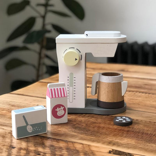 Καφετιέρα από ξύλο σε καθαρά απλά χρώματα που ταιριάζει απόλυτα στην κουζίνα σας. Είναι το τέλειο αξεσουάρ κουζίνας για παιδιά που λατρεύουν το παιχνίδι ρόλων.