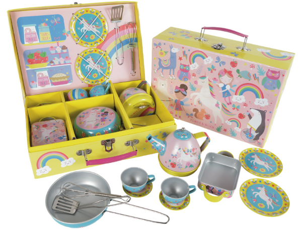 Το γλυκό σετ τσαγιού Rainbow Fairy Kitchen είναι η τέλεια δικαιολογία για ένα απογευματινό τσάι ή μεσημεριανό γεύμα. Το κουτί περιέχει εικονογραφήσεις μονόκερων, νεράιδων, ουράνια τόξα, λάμα, αρκούδες και άλλα.