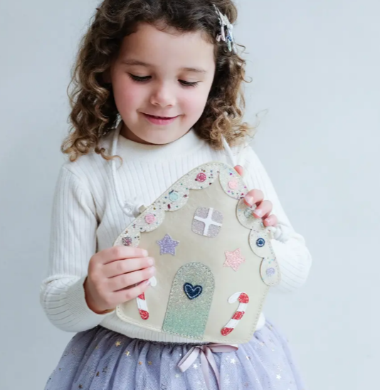 Προσθέστε μια γιορτινή & παιχνιδιάρικη πινελιά στο στυλ με την υπέροχη Gingerbread House Bag της Mimi & Lula, μια μικρή τσάντα ώμου σε σχήμα σπιτιού με θέμα τα μελομακάρονα και τα gingerbread cookies, ιδανική για παιδικές εμφανίσεις ή δώρο σε εορταστικές στιγμές.