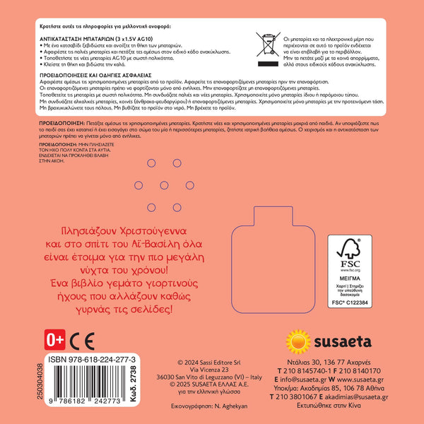 Πλησιάζουν Χριστούγεννα και στο σπίτι του Αϊ-Βασίλη όλα είναι έτοιμα για την πιο μεγάλη νύχτα του χρόνου! Ένα βιβλίο γεμάτο γιορτινούς ήχους που αλλάζουν καθώς γυρνάς τις σελίδες!