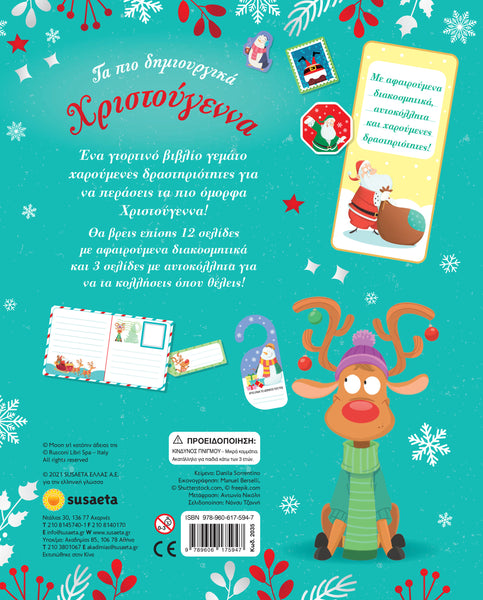 Ένα γιορτινό βιβλίο γεµάτο χαρούµενες δραστηριότητες για να περάσεις τα πιο όµορφα Χριστούγεννα! Θα βρεις επίσης 12 σελίδες µε αφαιρούµενα διακοσµητικά και 3 σελίδες µε αυτοκόλλητα για να τα κολλήσεις όπου θέλεις!