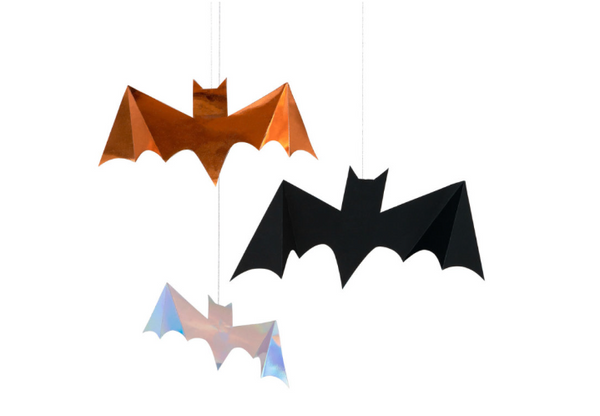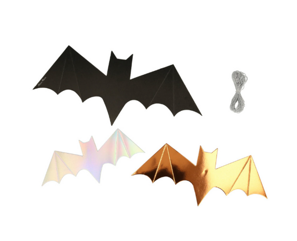 Αυτές οι εντυπωσιακές νυχτερίδες από τη συλλογή Halloween της Meri Meri είναι η τέλεια προσθήκη για κάθε Halloween πάρτι ή θεματική διακόσμηση! Το σετ περιλαμβάνει 8 νυχτερίδες σε 3 διαφορετικά μεγέθη, με εντυπωσιακές λεπτομέρειες σε ασημί και χάλκινη απόχρωση, καθώς και ασημένιο κορδόνι για ανάρτηση.